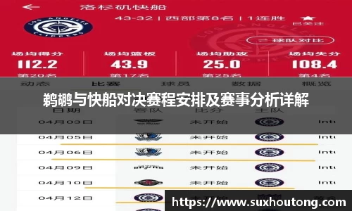 鹈鹕与快船对决赛程安排及赛事分析详解